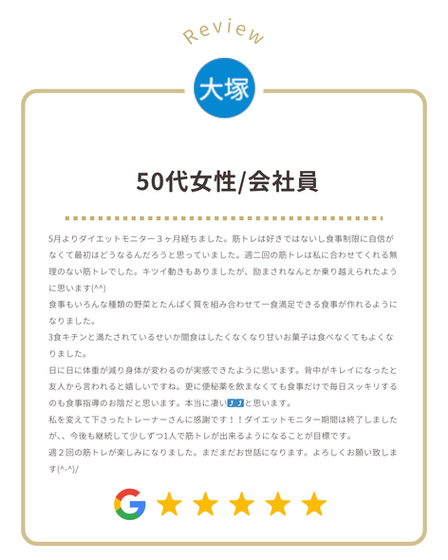 外食や飲酒の機会が多い方でも、それをふまえてしっかりとサポートしますのでご安心ください。一度身に着けた正しい食事法は、プログラム終了後もずっと役に立つ知識となるはずです。